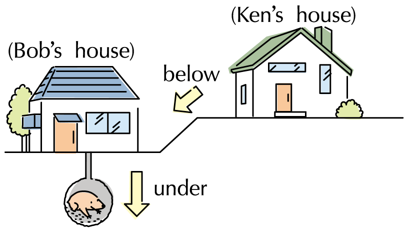 関連語Bob's house is below Ken's house. There is a mole under Bob's house.