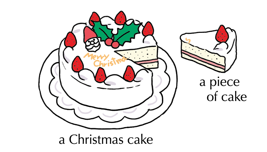 ⦣ このように1つの形を持ったものは a cake, cakes のように数えられる名詞として扱あつかう.