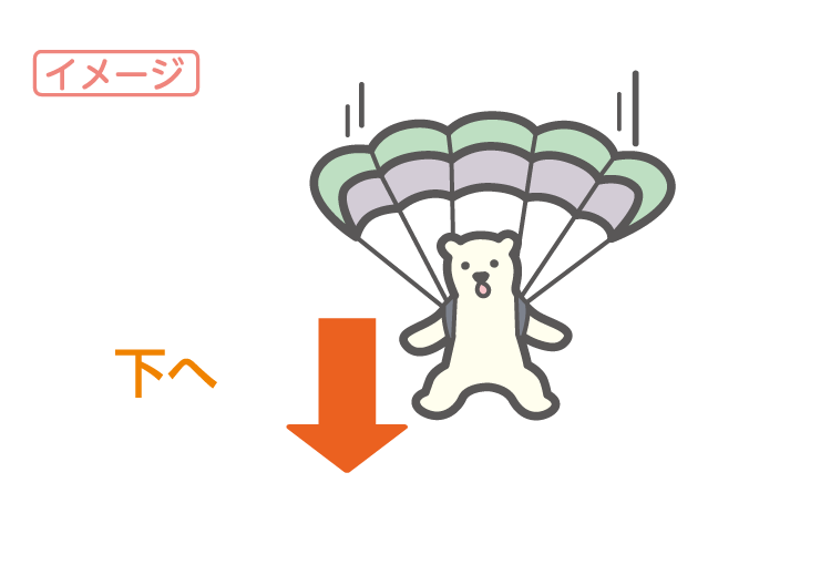 下へ行く, 降りる, 落ちる, 下がる, 沈しずむ