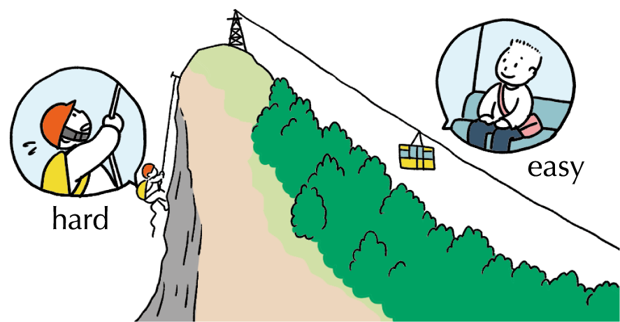 自転車に乗ってあの丘おかを登るのは難しい.