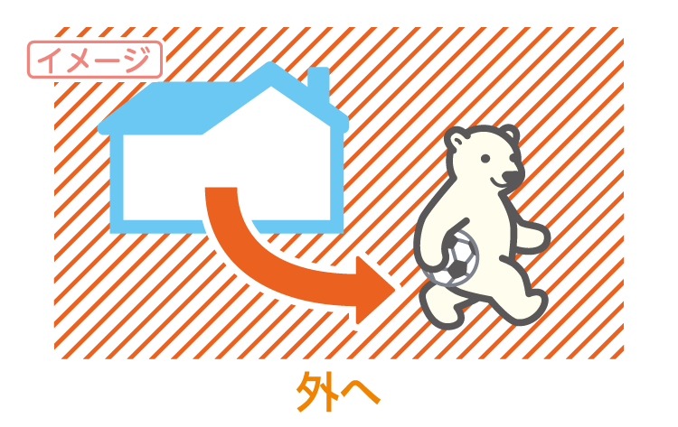 ❶外へ, 外を