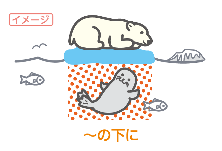 ❶位置が~の下に[で], ~の下へ[を]; ~の下の below